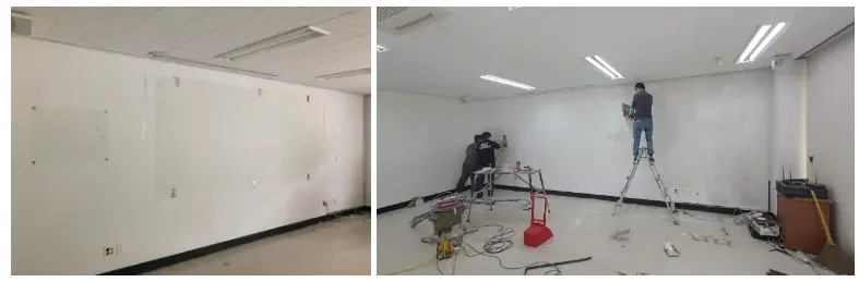 Every space created by PaintPam utilizes a specially developed paint. At Hannam University, the old whiteboard was removed, and the wall was carefully smoothed before applying the memo-friendly special paint.