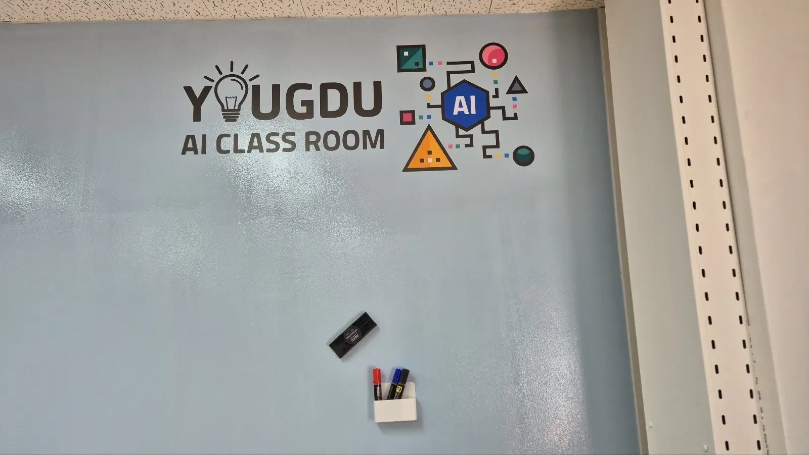 Beyond its functional benefits, Paintpam’s writing solution positively influences classroom design and color aesthetics. Instead of a conventional monochrome board, a refreshing blue classroom paint was used to foster a more creative thinking environment. This approach goes beyond a simple learning space, incorporating a unique design tailored for AI classrooms.
