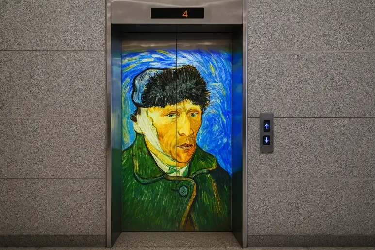 At first glance, an elevator may seem like just another part of a building’s infrastructure. But imagine standing in front of the elevator and seeing Van Gogh’s portrait come to life on the door itself.