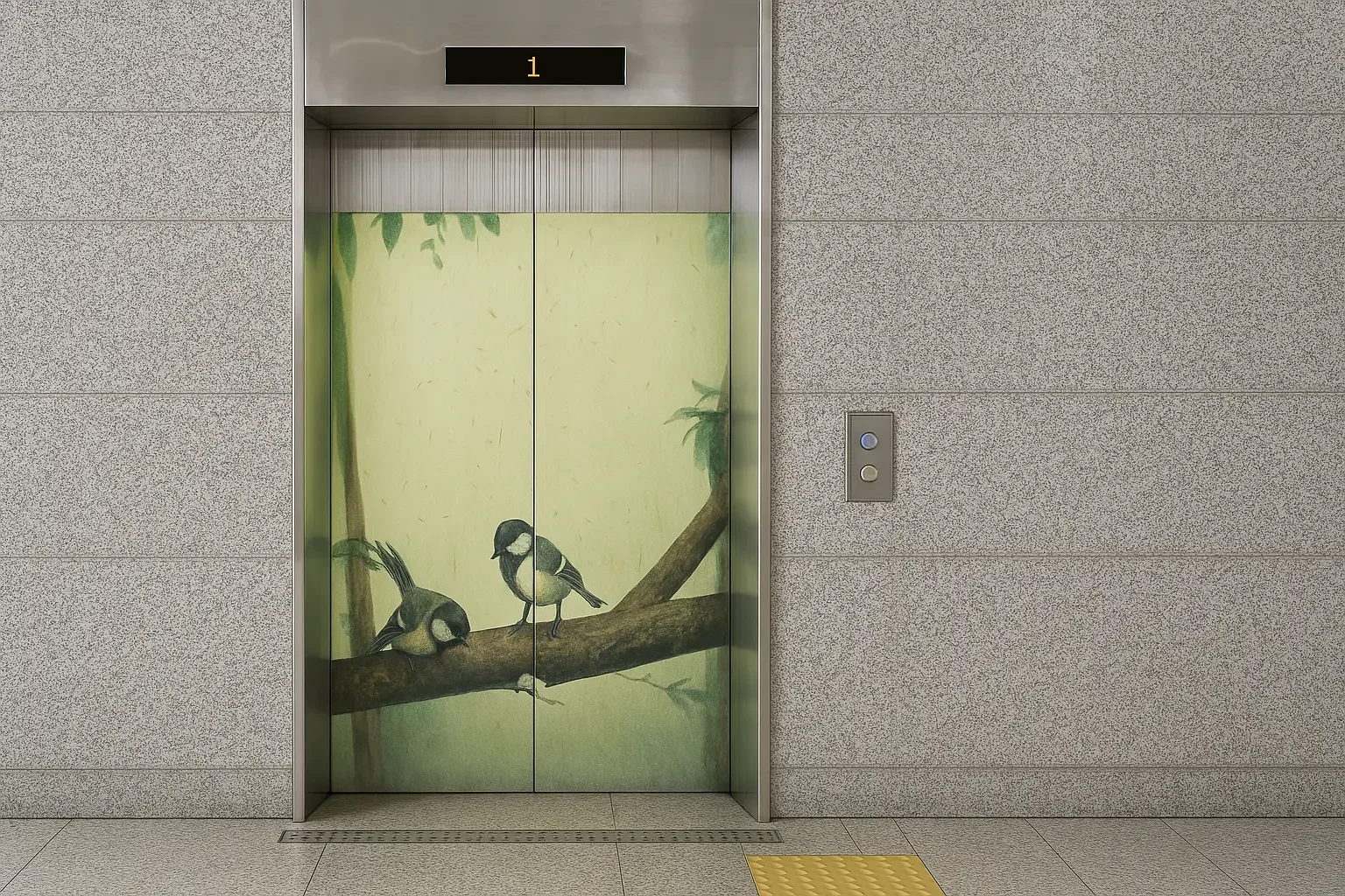 Elevators are typically seen as functional transit spaces. But with this installation, the elevator door becomes a cultural moment in an otherwise mundane environment.